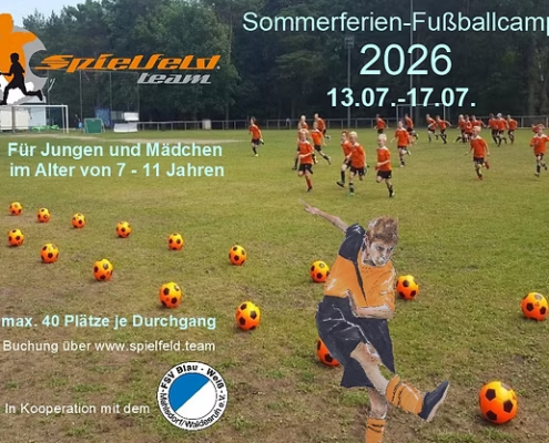 In Kooperation mit dem FSV Blau-Weiß Mahlsdorf/Waldesruh e.V veranstalten wir 2026 zum 14 mal in Folge unser gemeinsames Sommerferien-Fußballcamp.